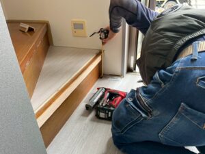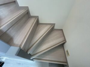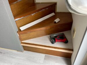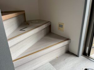 お部屋の床をリフォームしたら階段も同じ色系にリフォーム。