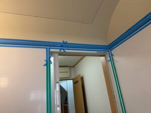 施工中のマスキングテープを貼ってシーリングしている作業を見ていると